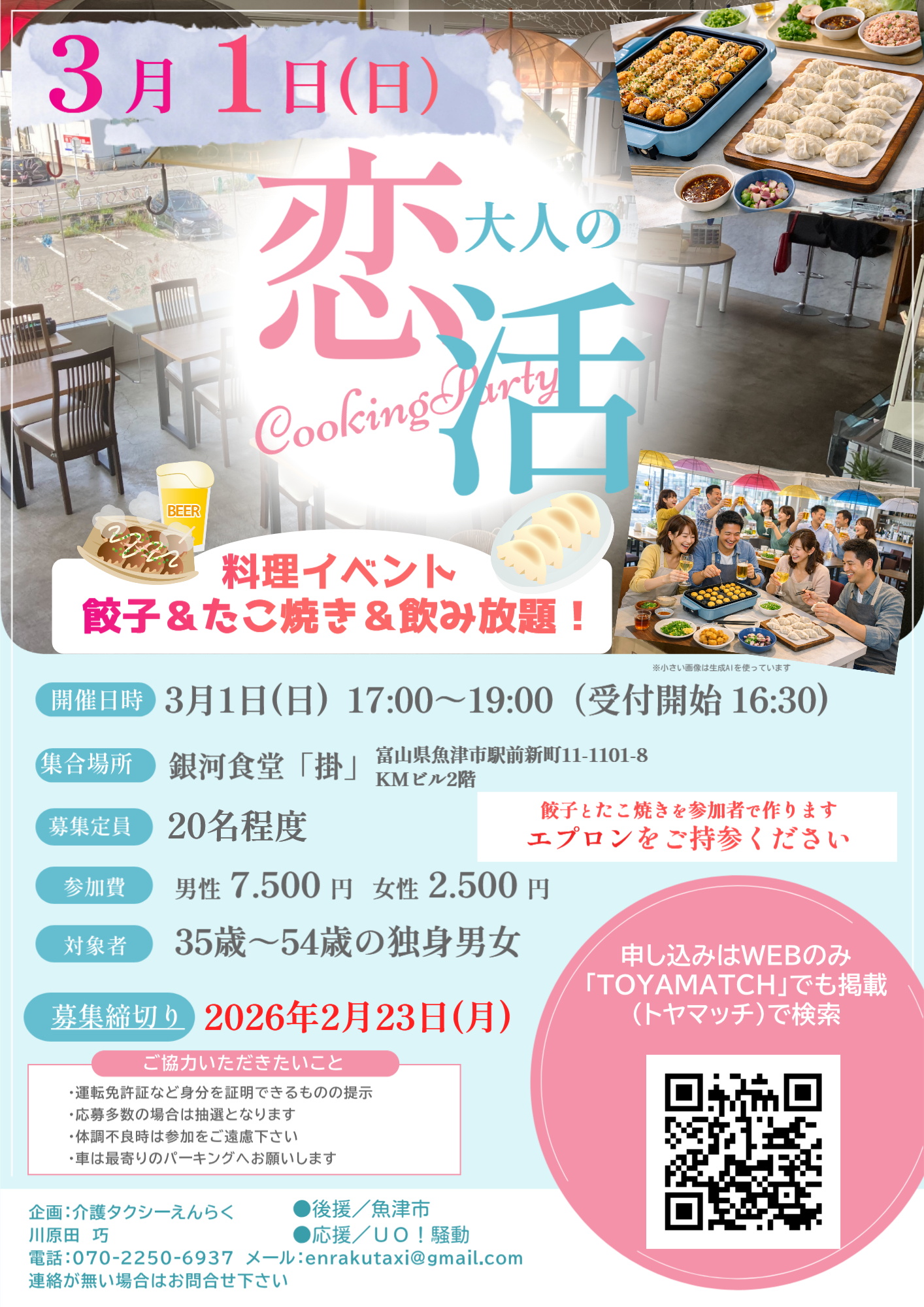 - このセミナーに参加された男性は、2月22日(日)に開催する射水市婚活サポーターズクラブ主催の出会いイベント(押し花で彩るランタンづくり)への参加が優先されます(ただし応募者多数の場合は抽選)