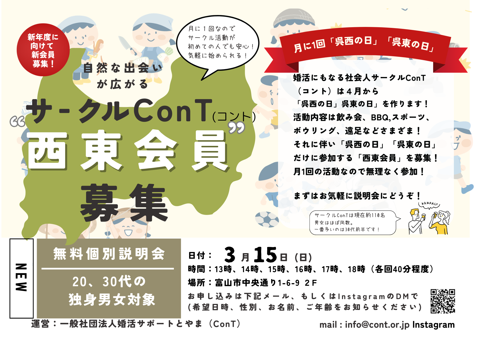 呉西、呉東会員募集!婚活にもなる社会人サークルConT 個別無料説明会