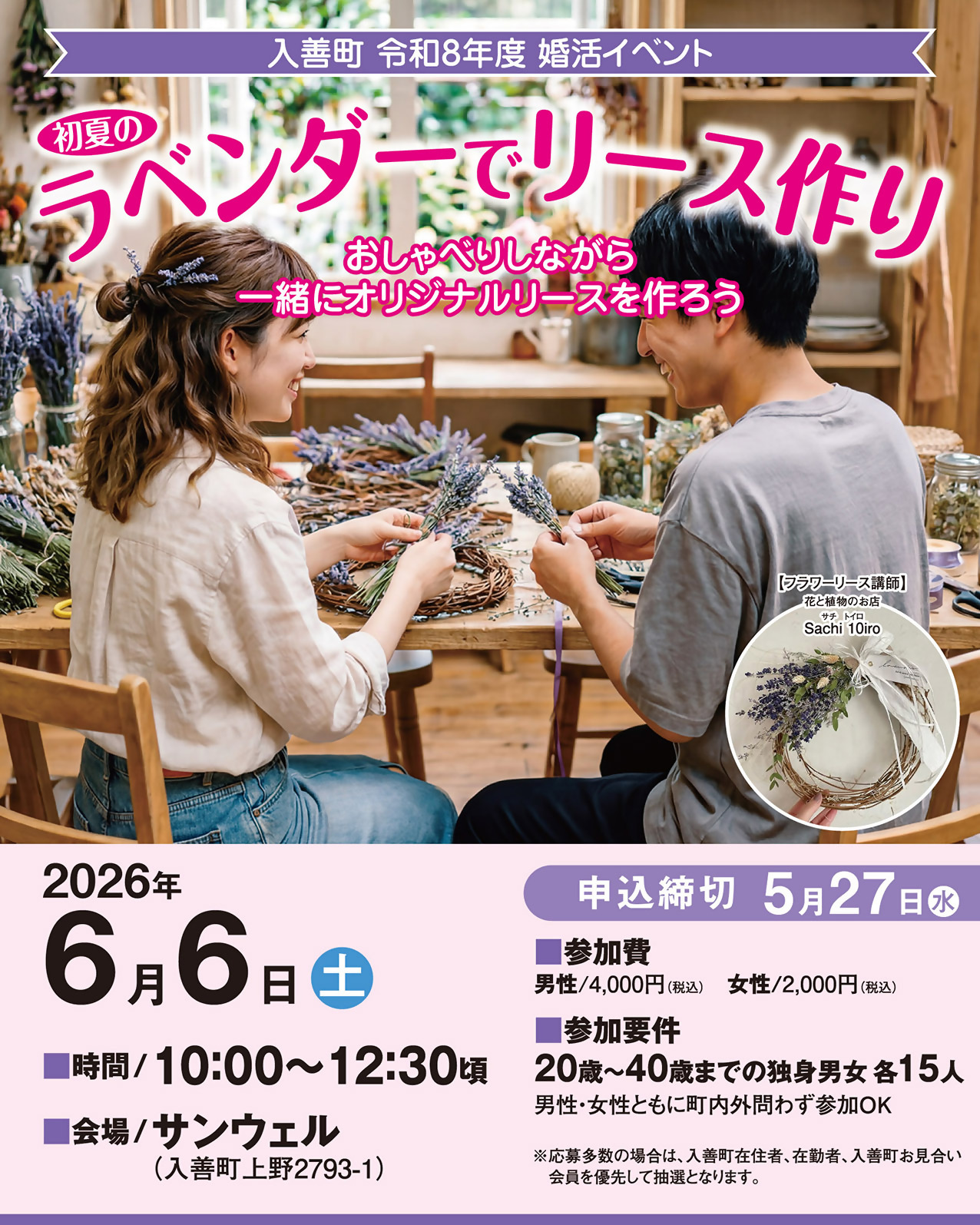 6/6(土)婚活イベント 「初夏のラベンダーでリース作り」 開催 入善町